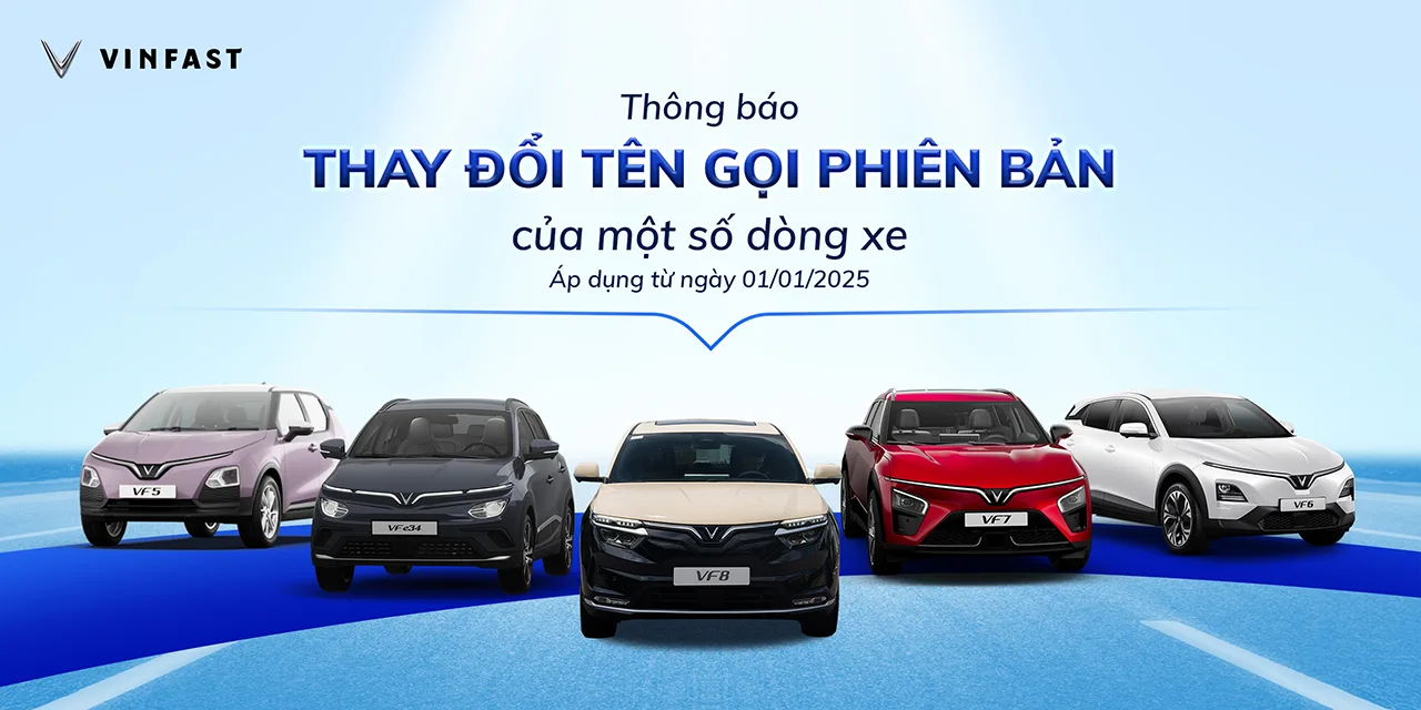 Nhằm phù hợp hơn với định hướng phát triển sản phẩm và giá trị mà từng dòng xe mang lại, VinFast trân trọng thông báo việc thay đổi tên gọi một số phiên bản xe ô tô điện. Đây không chỉ là sự thay đổi về tên gọi, mà còn là bước chuyển mình trong chiến lược, cam kết mang đến những giá trị vượt trội trên hành trình kiến tạo tương lai xanh bền vững của VinFast.